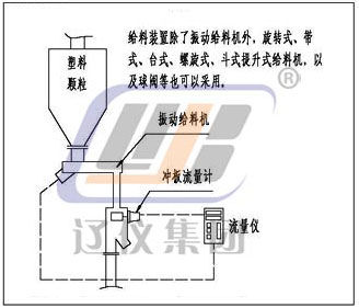 本儀表由(一次表)粉體沖量式流量變送器;(二次表)粉體沖量式流量儀;穩流裝置(一般情況下,由生產廠指導用戶設計、制造)三部分組成(需流量調解時應配流量調節器),系統配套見下圖